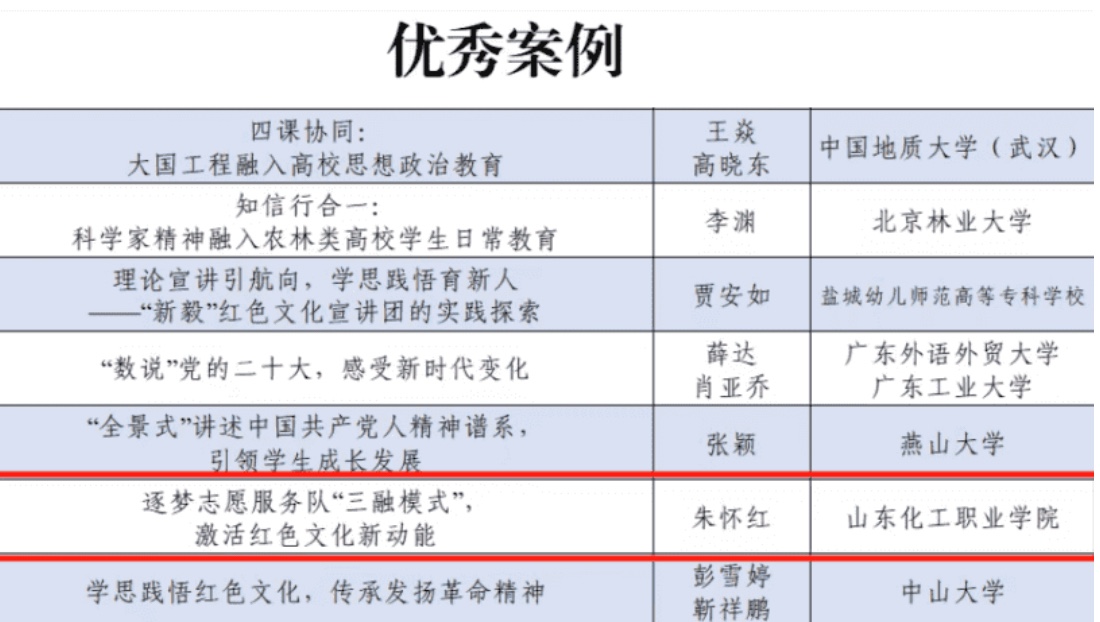 近日,教育部高校思想政治工作隊伍培訓(xùn)研修中心(山東大學(xué))、《高校輔導(dǎo)員》編輯部公布了2024年高校思想政治工作優(yōu)秀文章征集活動的評選結(jié)果。來自全國各高校的思政工作者踴躍參與,共提交工作案例1910篇、研究論文1549篇。經(jīng)初??審、復(fù)審、終評等環(huán)節(jié),最終評選出“雙百佳”及160篇優(yōu)秀案例與論文。我校朱懷紅老師憑借《逐夢志愿服務(wù)隊“三融模式”,激活紅色文化新動能》成功入選優(yōu)秀案例,展現(xiàn)了卓越的思想政治工作創(chuàng)新成果。