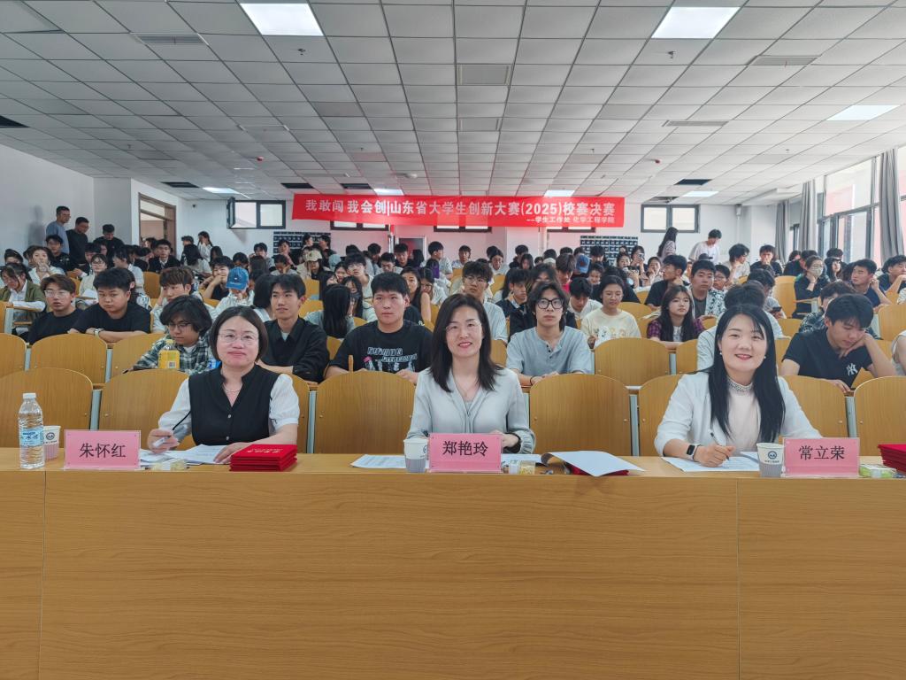 近日,學(xué)校在主校區(qū)階梯2教室舉行山東省大學(xué)生創(chuàng)新大賽(2025)校賽決賽,本次比賽由學(xué)生工作處主辦,化學(xué)工程學(xué)院承辦。教務(wù)科研處副處長鄭艷玲、學(xué)生工作處副處長朱懷紅、培訓(xùn)處干事常立榮擔(dān)任本次比賽評委,參賽項(xiàng)目團(tuán)隊(duì)成員及指導(dǎo)老師,各二級學(xué)院創(chuàng)新創(chuàng)業(yè)分管領(lǐng)導(dǎo)以及學(xué)生代表參加。