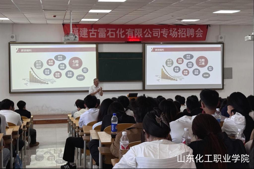 在福建古雷石化宣講會(huì)現(xiàn)場,應(yīng)冠羣介紹了古雷石化基本情況,針對(duì)同學(xué)們關(guān)注的職業(yè)發(fā)展與生活保障,就公司執(zhí)行行業(yè)領(lǐng)先的薪酬體系、通勤班車、生活設(shè)施、文化活動(dòng)等進(jìn)行了解答,與同學(xué)們進(jìn)行了互動(dòng)交流。