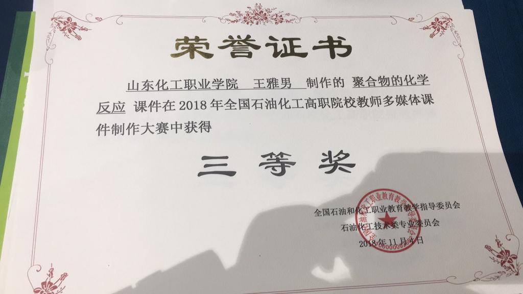 2018年職業(yè)院校石油化工技術(shù)及相關(guān)專業(yè)多媒體課件大賽由全國石油和化工職業(yè)教育教學(xué)指導(dǎo)委員會(huì)、中國化工教育協(xié)會(huì)、石化行指委石油化工類專業(yè)委員會(huì)主辦,對于本次比賽,化學(xué)工程系教師在多媒體課件上認(rèn)真下功夫,仔細(xì)對照評分細(xì)則,層層篩選,級級優(yōu)化,并組織專家進(jìn)行內(nèi)部評審,最終遞交7件作品,喜獲佳績,鼓舞士氣,為后續(xù)競賽打響了第一槍。
