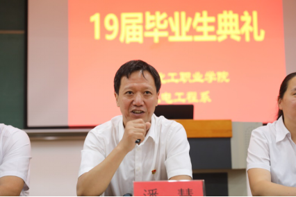 典禮進(jìn)行到第五項(xiàng)議程,范振河老師代表機(jī)電工程系全體教師進(jìn)行發(fā)言,他用真誠(chéng)的話(huà)語(yǔ)道出了對(duì)孩子們的不舍和滿(mǎn)滿(mǎn)的祝福,他講到“三年前,你們還是稚嫩的孩童,肩膀背著重重的行囊,懷揣著美美的夢(mèng)想邁進(jìn)了山東化工職業(yè)學(xué)院的大門(mén),三年后的今天,經(jīng)過(guò)歲月的洗禮,你們已經(jīng)華麗轉(zhuǎn)身,走向成熟,邁向社會(huì),奔上自己的人生之路?!狈独蠋煹陌l(fā)言闡述了全體老師的心聲,也為2019屆畢業(yè)生送去了滿(mǎn)滿(mǎn)的祝福。