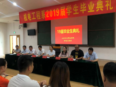 7月10日上午10點(diǎn),山東化工職業(yè)學(xué)院機(jī)電工程系2019屆學(xué)生畢業(yè)典禮在5號(hào)階梯教室舉行。學(xué)院黨委副書(shū)記潘慧,機(jī)電工程系黨支部書(shū)記、系主任彭愛(ài)玲,機(jī)電工程系副主任常永清,基礎(chǔ)教學(xué)部主任、體育教學(xué)部主任、現(xiàn)代信息中心主任、2016級(jí)輔導(dǎo)員沈威,學(xué)生工作處干事、2016級(jí)機(jī)械專(zhuān)業(yè)輔導(dǎo)員朱懷紅,2016級(jí)機(jī)電輔導(dǎo)員趙楊,機(jī)電工程系全體教師出席了此次畢業(yè)典禮,典禮由機(jī)電工程系黨支部副書(shū)記、主任助理劉凱主持。