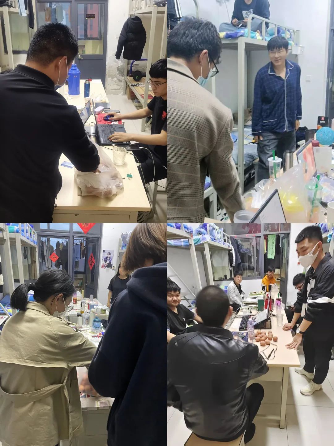 在走訪過程中,老師與同學(xué)們親切交談,表達(dá)對(duì)同學(xué)們的關(guān)心與問候,在交談中增進(jìn)感情,同學(xué)們也敞開心扉,與老師們交流線上教學(xué)學(xué)習(xí)情況、宿舍生活等情況。老師們?cè)儐枌W(xué)生生活需求并傳達(dá)了學(xué)校工會(huì)為學(xué)生采購(gòu)了生活必需品的通知,讓學(xué)生們生活上放心。老師們與學(xué)生們聊聊心中顧慮與焦慮,也安撫了他們清明節(jié)不能回家的心情,提醒學(xué)生給父母打電話道平安,讓學(xué)生們暖心。