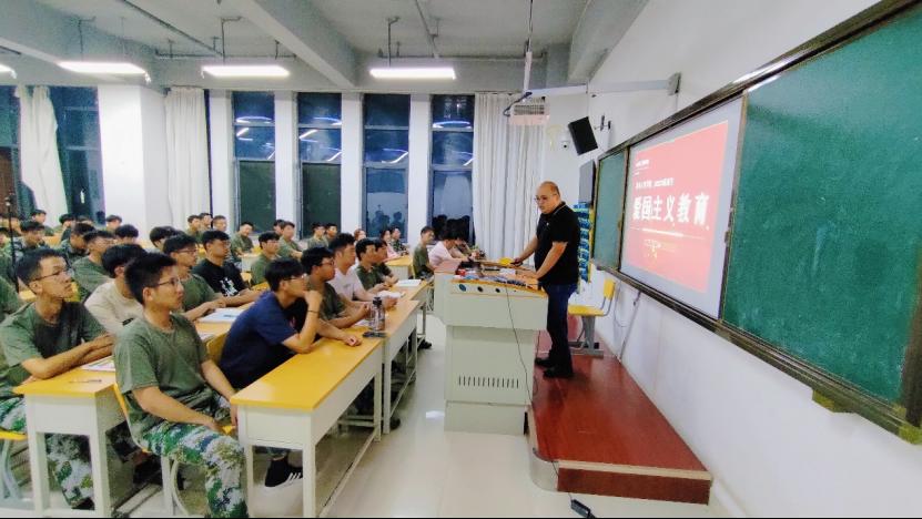機電工程學院團總支書記趙楊通過詳細講述社會主義價值觀、《新時代愛國主義教育實施綱要》解讀、新時代的中國國防、沒有共產(chǎn)黨就沒有中國特色社會主義、黨的百年光輝歷程等五個方面對新生進行愛黨、愛國教育,厚植愛國主義情懷,堅定一心一意跟黨走的信念。