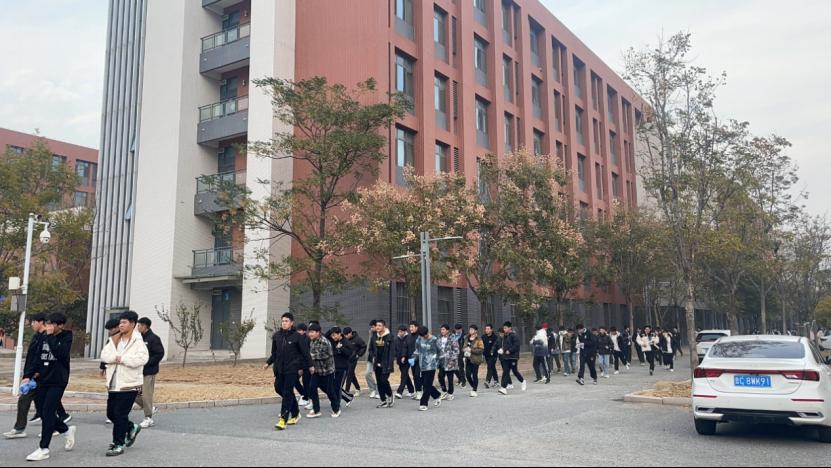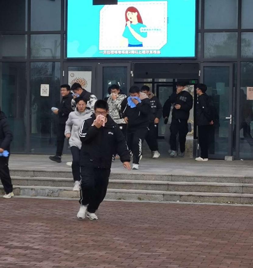 警報(bào)拉響,消防演練正式開始,全體指導(dǎo)老師反應(yīng)迅速,立刻組織學(xué)生迅速沿著指定的疏散通道快速向?qū)W校操場(chǎng)撤離。整個(gè)撤離過程井然有序。