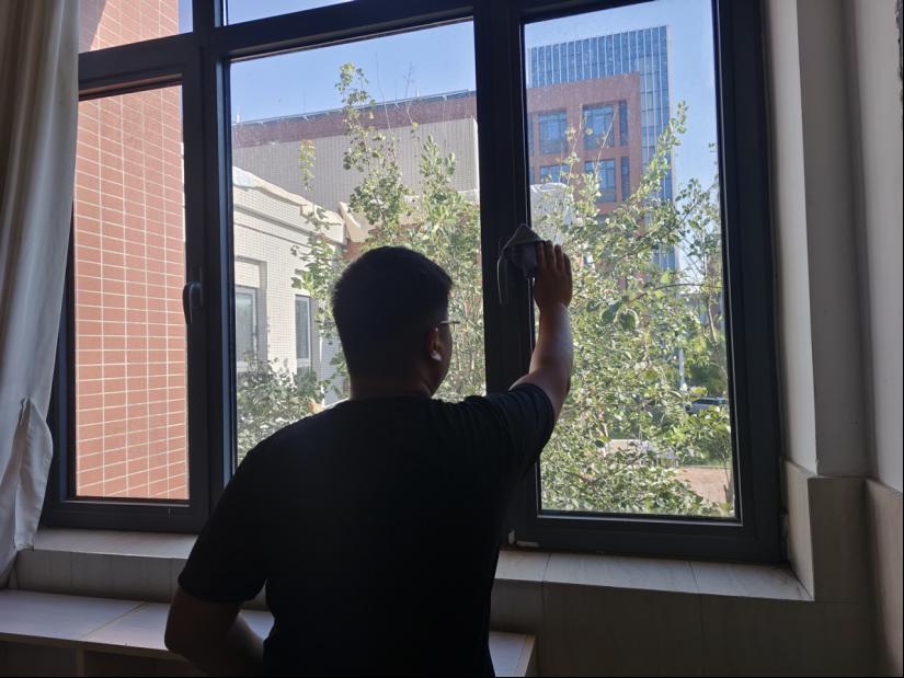 8月29日清晨,當(dāng)?shù)谝豢|陽光灑在校園時,輔導(dǎo)員和志愿者們已經(jīng)集合完畢。他們分工明確,配合默契,迅速投入到了緊張而有序的打掃工作中。從地面到窗戶,從床鋪到書桌,每一個角落都經(jīng)過了精心的打掃和整理。學(xué)院更是特別注重寢室的通風(fēng)和消毒,確保新生們能夠在一個健康的環(huán)境中安心居住。