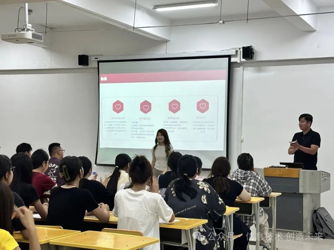 隨后,輔導(dǎo)員圍繞“大學(xué)生活怎么過”展開核心分享,內(nèi)容既實(shí)用又貼合專業(yè)需求。輔導(dǎo)員不僅強(qiáng)調(diào)基礎(chǔ)課程與實(shí)踐能力的重要性,提醒新生提前了解選課規(guī)則、重視學(xué)分績點(diǎn),還從宿舍安全、作息管理、校園資源使用等方面給出建議,重點(diǎn)提醒防范詐騙、合理安排生活費(fèi)。此外,輔導(dǎo)員鼓勵(lì)新生主動(dòng)跳出舒適圈,通過加入社團(tuán)、擔(dān)任班委等方式鍛煉能力,同時(shí)強(qiáng)調(diào)“學(xué)會(huì)溝通”“保持自律”的重要性,以此提升綜合素養(yǎng)。