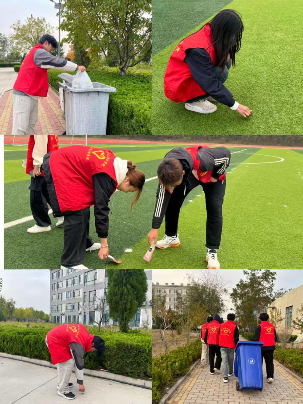 行動前,學生干部明確重點清掃區(qū)域,細化分組分工。他們身著志愿服,彎腰俯身清理每一處衛(wèi)生區(qū)域。大家分工協(xié)作、默契配合,忙碌的身影與整潔的操場相映,成為校園里極具溫度的文明風景。
