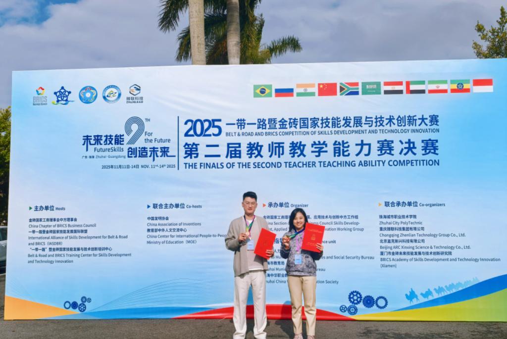 本次大賽由金磚國家工商理事會中方理事會、一帶一路暨金磚國家技能發(fā)展國際聯(lián)盟等單位主辦,全國181支優(yōu)秀教師團隊入圍國賽、同臺競技。備賽期間,我校團隊深耕課程設(shè)計,融合信息技術(shù)與教學實踐,精心打磨說課內(nèi)容與特色教學絕活,以扎實的專業(yè)素養(yǎng)、流暢的英語展示和清晰的現(xiàn)場答辯,充分展現(xiàn)了我校教師卓越的教學水平與創(chuàng)新風采。