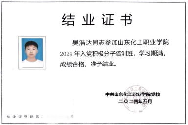 作為一名新時(shí)代共青團(tuán)員,他在思想上始終向黨組織看齊。2023年9月,入學(xué)后第一時(shí)間向黨組織遞交了入黨申請(qǐng)書(shū),思想的進(jìn)步是行動(dòng)的指南。同年11月,進(jìn)入山化院第二期青馬工程培訓(xùn)班;2024年4月,推優(yōu)為入黨積極分子;同年5月參加山化院黨校培訓(xùn)班學(xué)習(xí)并獲得結(jié)業(yè)證書(shū)。同年6月,獲山化院第二期青馬工程“優(yōu)秀學(xué)員”榮譽(yù)稱號(hào)。