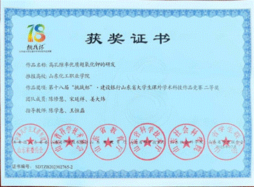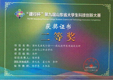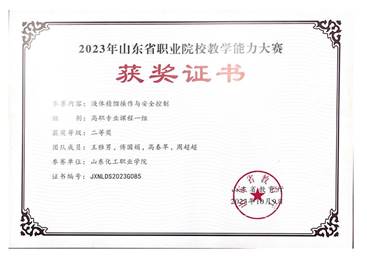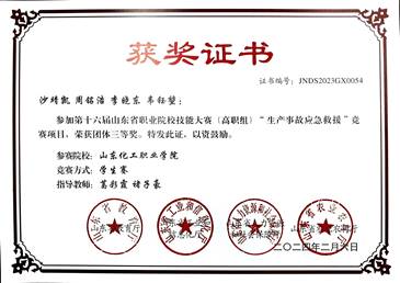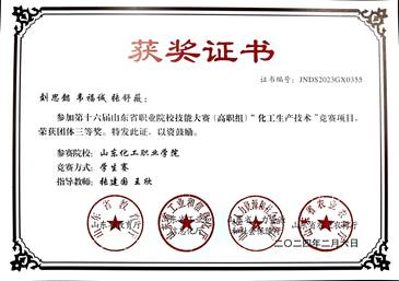 山東省大學生化工生產(chǎn)技術(shù)技能比賽二等獎 |