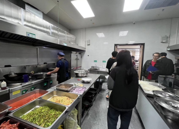 同學(xué)們?cè)诓蛷d工作人員的帶領(lǐng)下,對(duì)餐廳配送貨環(huán)節(jié)食材新鮮度、餐廳內(nèi)衛(wèi)生、操作間衛(wèi)生、各窗口食材擺放、食品制作流程規(guī)范及菜品口味、質(zhì)量、價(jià)格等情況進(jìn)行了全面細(xì)致的了解,每到一處都認(rèn)真察看,聽取餐廳負(fù)責(zé)人的詳細(xì)介紹。