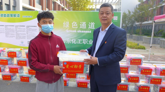 2020年10月11日、12日是山東化工職業(yè)學(xué)院新生報(bào)到的日子。學(xué)院學(xué)生工作處資助管理中心為響應(yīng)“堅(jiān)決打贏脫貧攻堅(jiān)戰(zhàn)”的號(hào)召、落實(shí)教育資助領(lǐng)域“精準(zhǔn)扶貧”,提前通過(guò)山東省學(xué)生資助管理中心的建檔立卡學(xué)生資助信息管理系統(tǒng)下載了全部省內(nèi)建檔立卡學(xué)生名單,為他們精心準(zhǔn)備了愛(ài)心禮包,結(jié)合政策宣傳,開(kāi)展了一次“愛(ài)心禮包、助力圓夢(mèng)”活動(dòng)。