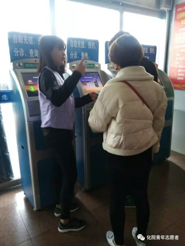 引導(dǎo)不會用就診卡自助服務(wù)機(jī)的人使用自助服務(wù)機(jī)器。