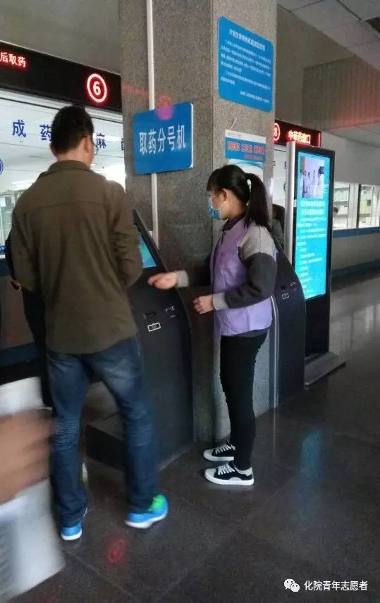 引導(dǎo)需要取藥的人使用分號機(jī)刷卡取藥。