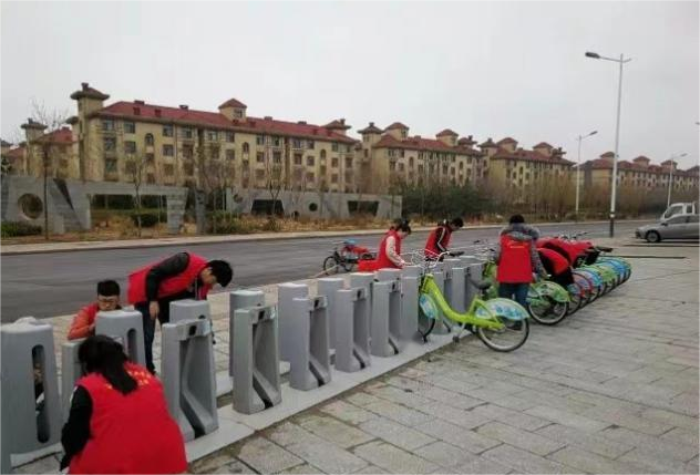 為紀(jì)念“學(xué)習(xí)雷鋒精神”五十五周年,用實(shí)際行動(dòng)弘揚(yáng)雷鋒精神,學(xué)院團(tuán)委、學(xué)院愛(ài)心志愿服務(wù)隊(duì)聯(lián)合濰坊職業(yè)學(xué)院博愛(ài)志愿者協(xié)會(huì)于2018年3月18日上午開展“弘揚(yáng)雷鋒精神—擦拭公共自行車”活動(dòng)。