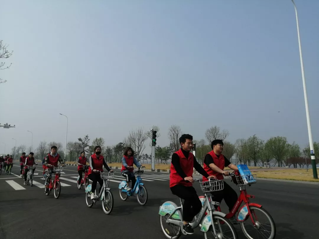 2019年4月13日上午,我院志愿者們在山東海事職業(yè)學(xué)院門口集合,與濰坊職業(yè)學(xué)院、山東海事職業(yè)學(xué)院的志愿者們聯(lián)合進行了此次綠色騎行之旅。我院志愿者們從山東海事職業(yè)學(xué)院門口出發(fā),途經(jīng)渤海之眼與未來大廈,并在兩處景點進行了簽名合影留念。