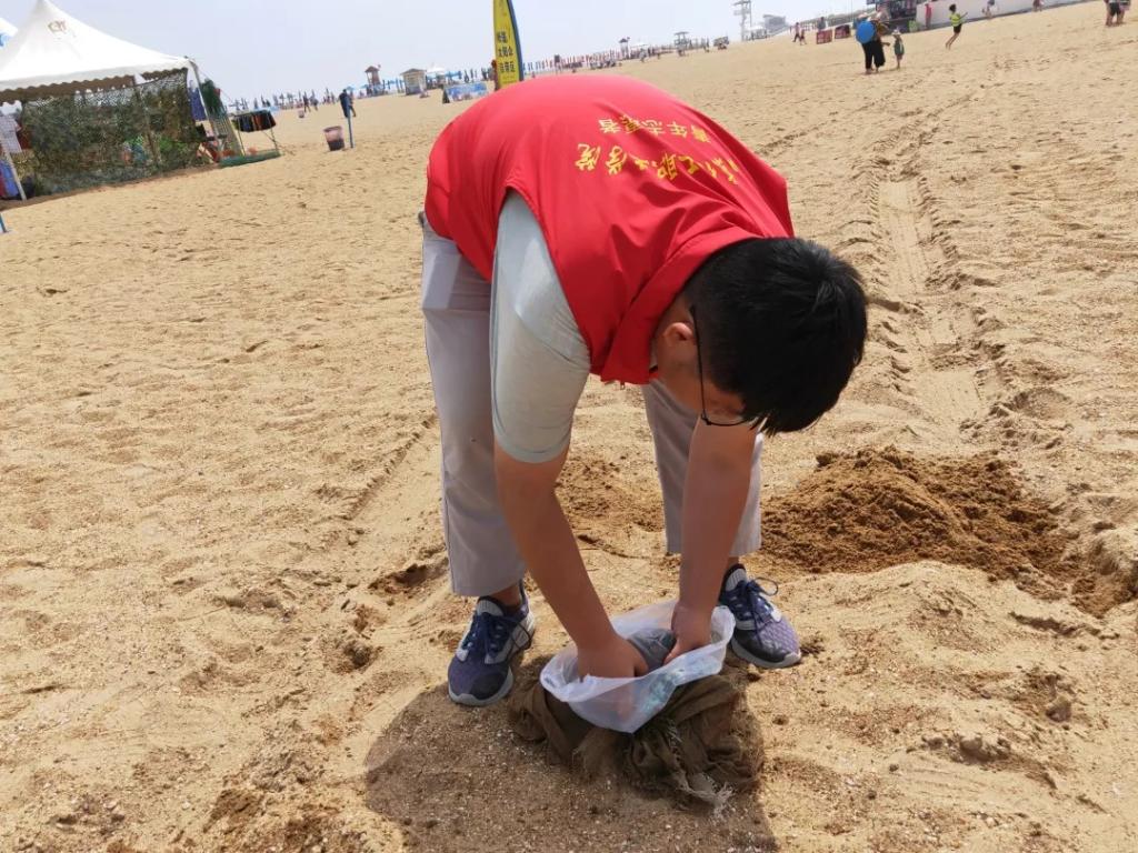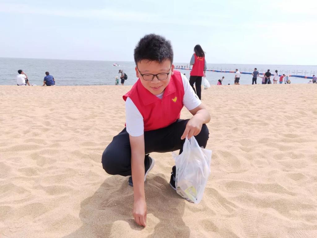 6月15日上午,我院志愿者到達濰坊歡樂海沙灘參加“把呼吸還給海洋”為主題的凈灘行動。