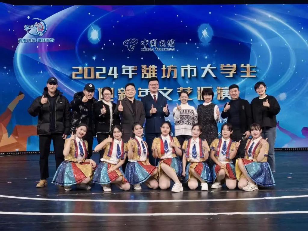 為進(jìn)一步提高駐濰高校學(xué)生的藝術(shù)水平,增進(jìn)各高校之間的溝通交流,展示駐濰高校大學(xué)生積極向上的精神風(fēng)貌。2023年12月27日晚,中共濰坊市委教育工作委員會主辦、駐濰22所高校共同參與“迎新年,再出發(fā)”,2024年濰坊市大學(xué)生迎新年的文藝匯演,此次活動取得圓滿成功,廣受社會各界贊譽(yù)。由我校選送的節(jié)目《燃爆青春》收到觀眾好評。