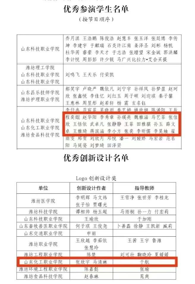 近日,中共濰坊市委教育工委發(fā)來情況通報,對我校在“濰坊迎新年再出發(fā)”系列活動2024年濰坊市大學(xué)生迎新年文藝匯演中的精彩表現(xiàn)給予通報表揚(yáng),學(xué)校獲優(yōu)秀組織單位,李昂同志獲優(yōu)秀組織個人獎和優(yōu)秀教學(xué)指導(dǎo)教師,孫瑛亮、魏雅涵、馬藝菲、張佳欣、王恬依、武卓凡、張靜靜七名同學(xué)獲優(yōu)秀參演學(xué)生,于航老師指導(dǎo)的兩名同學(xué)張欣宇、馬清琳獲Logo創(chuàng)新設(shè)計獎。
