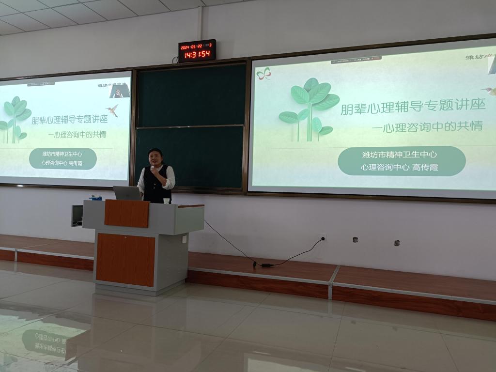 為健全“學(xué)校—二級(jí)學(xué)院--班級(jí)--宿舍”四級(jí)學(xué)生心理健康工作網(wǎng)絡(luò),更好的發(fā)揮心理健康預(yù)警網(wǎng)絡(luò)的作用,5月22日,我校特別邀請(qǐng)濰坊市精神衛(wèi)生中心專家高傳霞到校共同開展2024年春季學(xué)期心理委員專項(xiàng)培訓(xùn)。