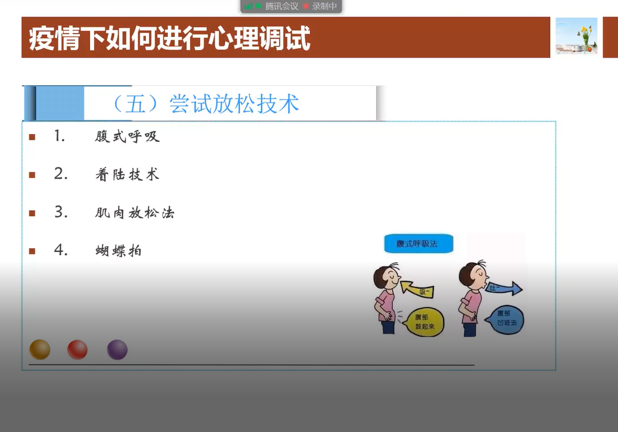 最后,趙老師還帶領(lǐng)同學們進行放松訓練,如腹式呼吸、著陸技術(shù)、蝴蝶拍等,希望同學們可以在日常生活中自己學會調(diào)節(jié)自己的情緒。但是,如果突發(fā)狀況超出我們個人應(yīng)對能力時,要及時向他人或者心理專業(yè)人士求助,尋求社會支持。