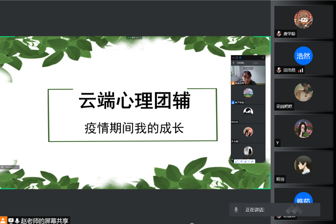 云端心理團(tuán)輔已經(jīng)持續(xù)開展兩個周,近千名同學(xué)積極參與互動,由于參與人數(shù)過多,無法給每一個同學(xué)帶來更多的關(guān)注,所以本周第三期云端團(tuán)輔,我們將主題確定后,以二級學(xué)院為單位,于周三下午開展四場騰訊會議,并將每場會議人數(shù)控制在20人以內(nèi),確保每一個同學(xué)都能有更好的參與體驗。每組各由一位心理老師和一位思政老師共同主持,在做好心理疏導(dǎo)的同時,對同學(xué)們進(jìn)行思想引導(dǎo)。