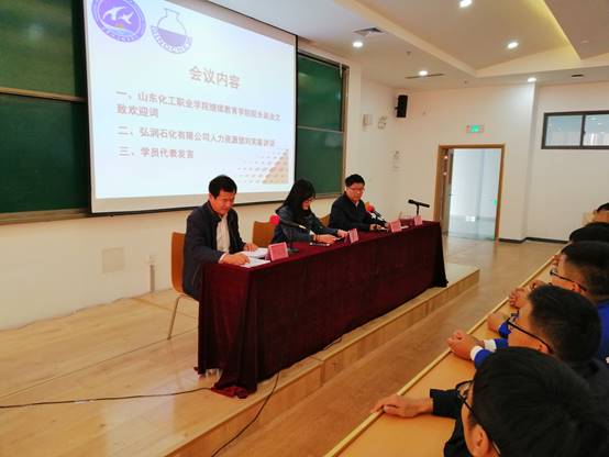 10月12日下午3:30,弘潤石化第四期技能培訓(xùn)班開班儀式在我院第七階梯教室舉行,繼續(xù)教育學(xué)院趙業(yè)文院長、于立忠副院長,弘潤石化人力資源部領(lǐng)導(dǎo)劉笑菡出席會(huì)議。