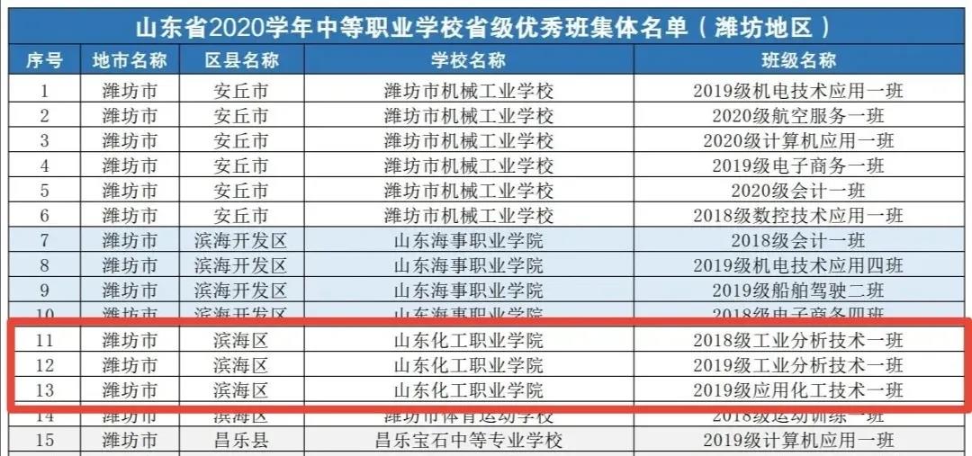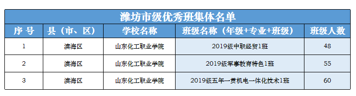 濰坊市市2020學(xué)年中等職業(yè)學(xué)校優(yōu)秀班集體名單