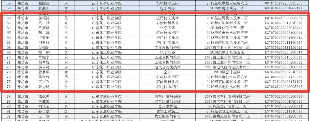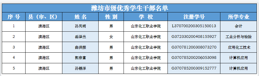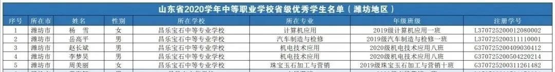 山東省2020學(xué)年中等職業(yè)學(xué)校省級優(yōu)秀學(xué)生干部名單(濰坊地區(qū))