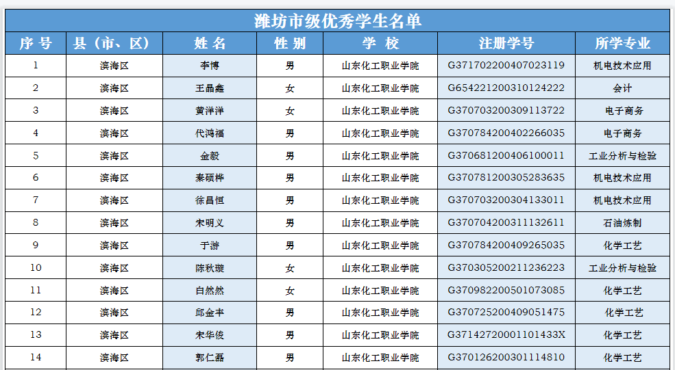 濰坊市2020學(xué)年中等職業(yè)學(xué)校市級優(yōu)秀學(xué)生名單