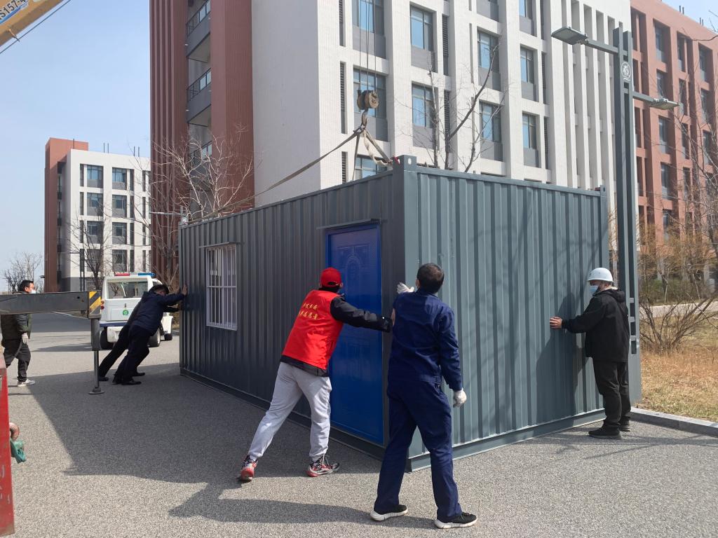 此批防疫物資包含3個集裝箱板房、30套防護服、10000枚醫(yī)用外科口罩和4箱消毒液。根據(jù)省教育廳疫情防控要求:3個集裝箱板房分別在校門口、南宿舍區(qū)和北宿舍區(qū)建設(shè)為臨時留觀點;消毒液單獨存放于隔離區(qū)一樓防疫倉庫內(nèi);防護服及一次性醫(yī)用外科口罩存放于2號教學樓一樓東側(cè)防疫倉庫內(nèi)。